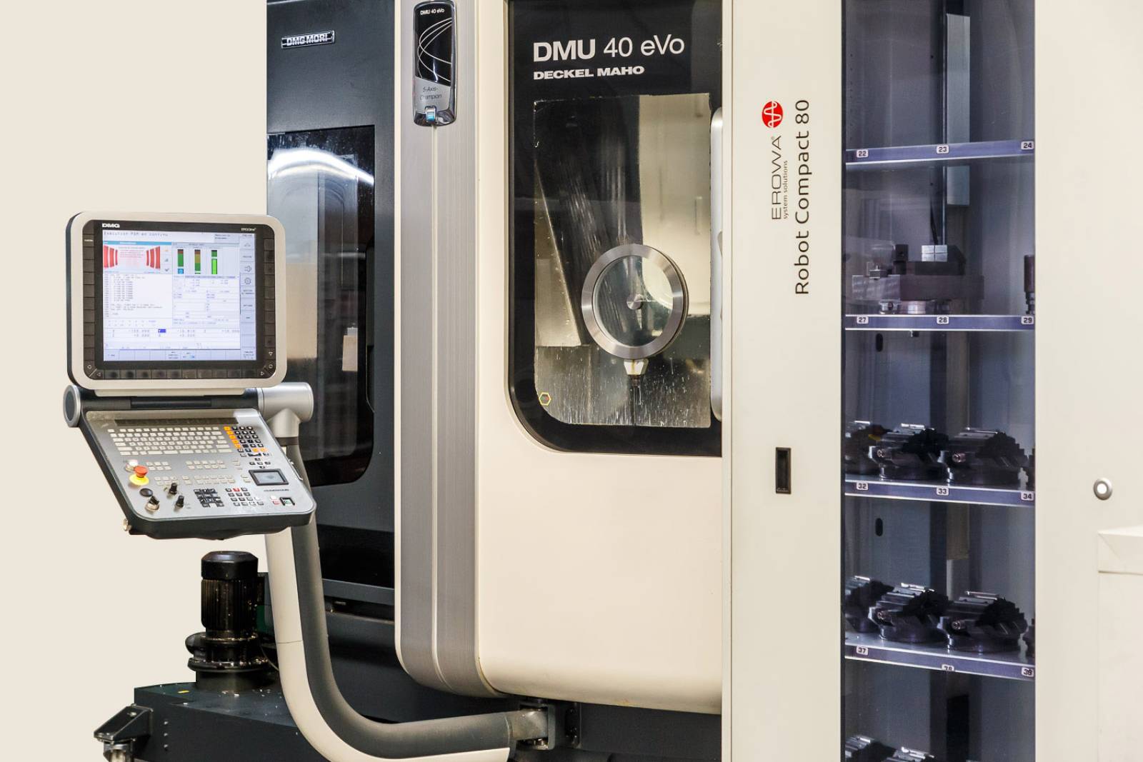 Associé à un robot palettisé, la machine peut fonctionner en série en parfaite autonomie sans la présence du technicien.